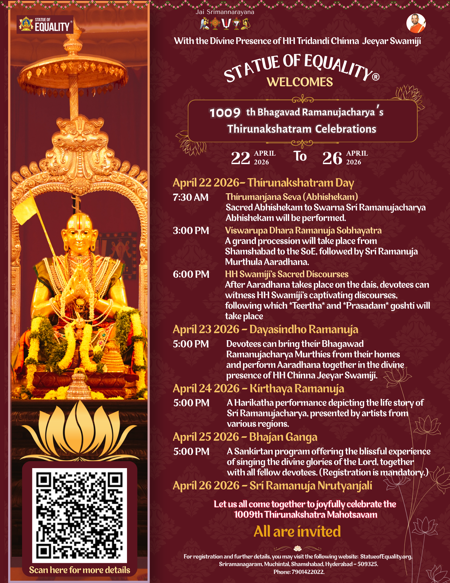 Let us all come together to joyfully celebrate the 1009th Thirunakshatram Mahotsavam.
