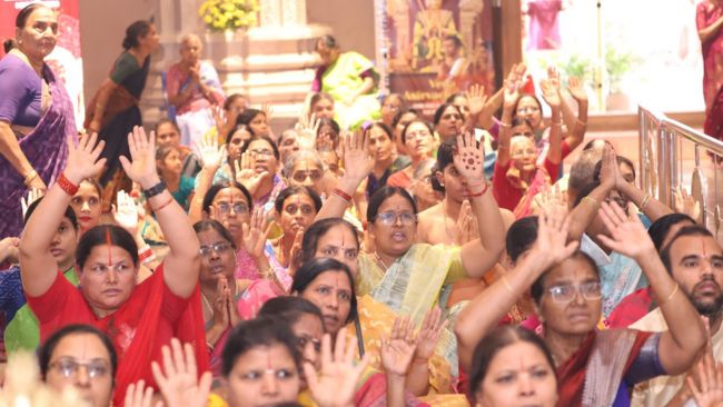 Inspiring discourse after Aaradhana, followed by Theertha–Prasada Goshti.